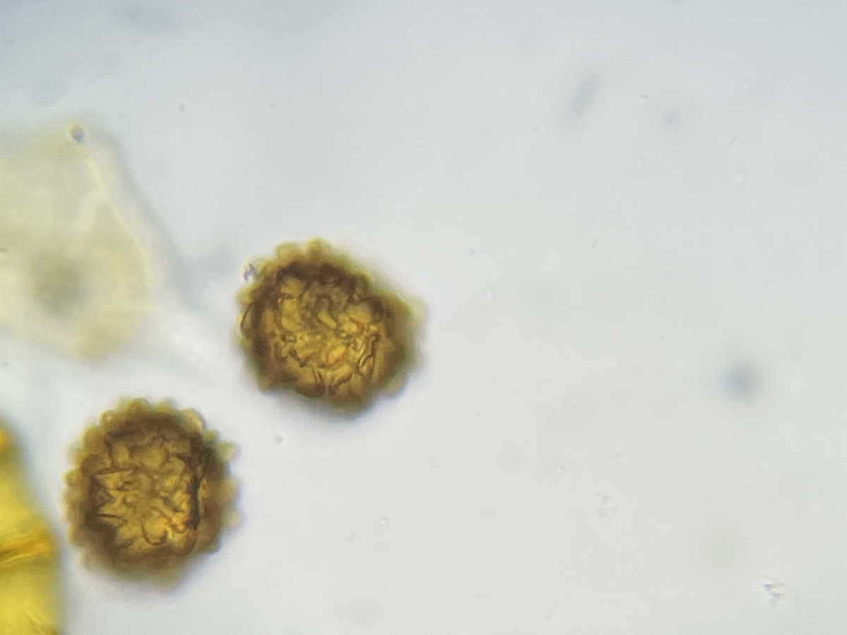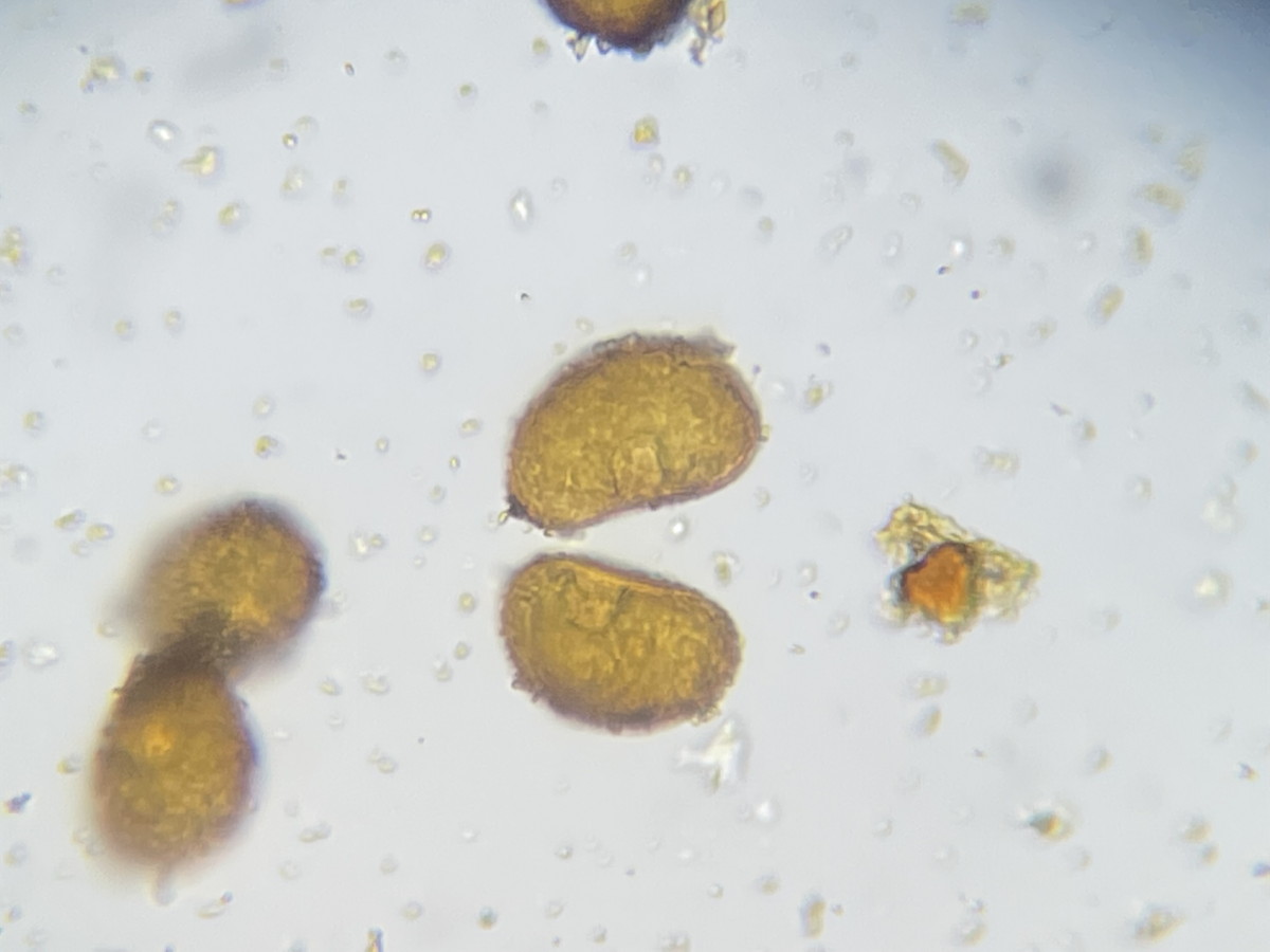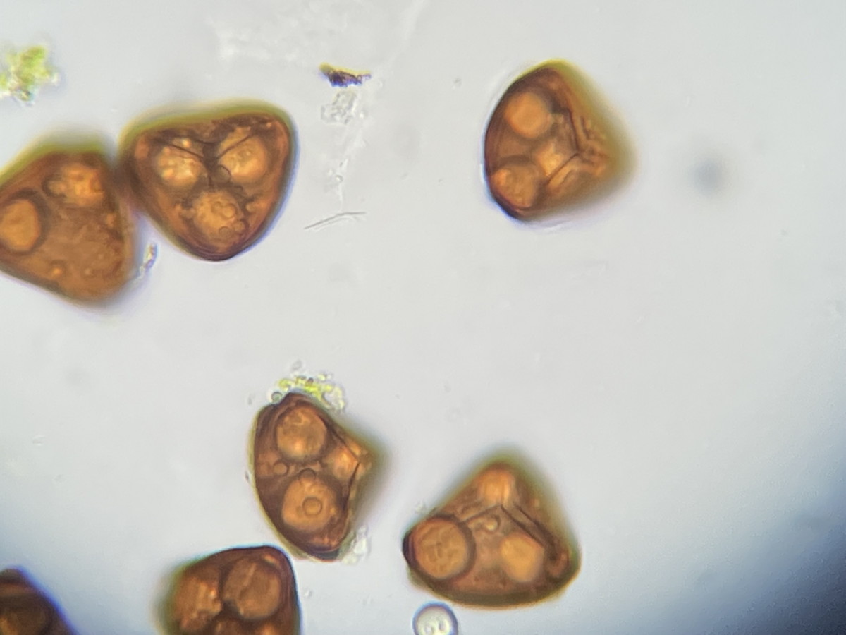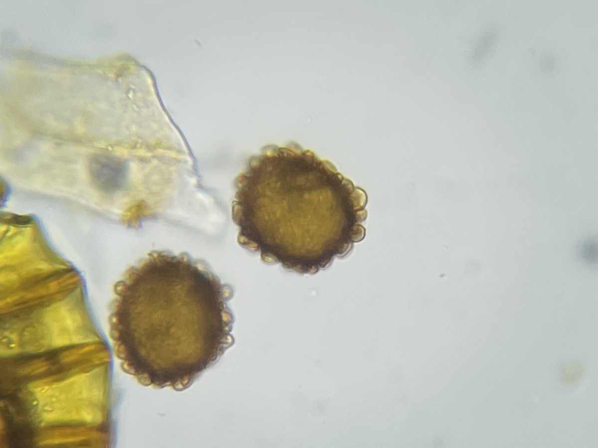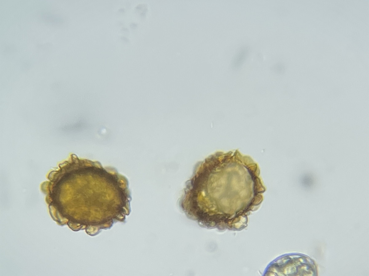 ※胞子は、大きさに大小があり形は歪で不揃いで雑種の特徴がよく現れている。