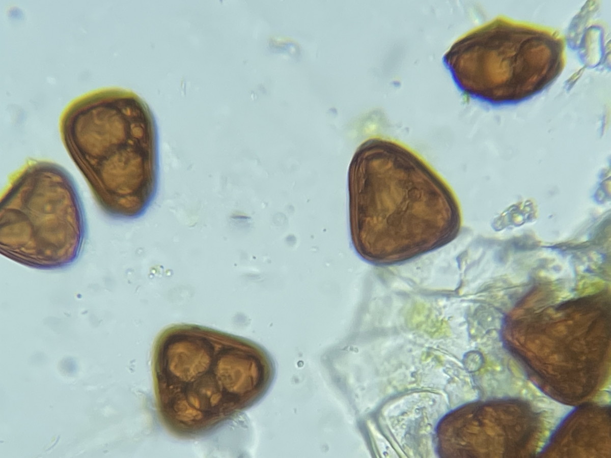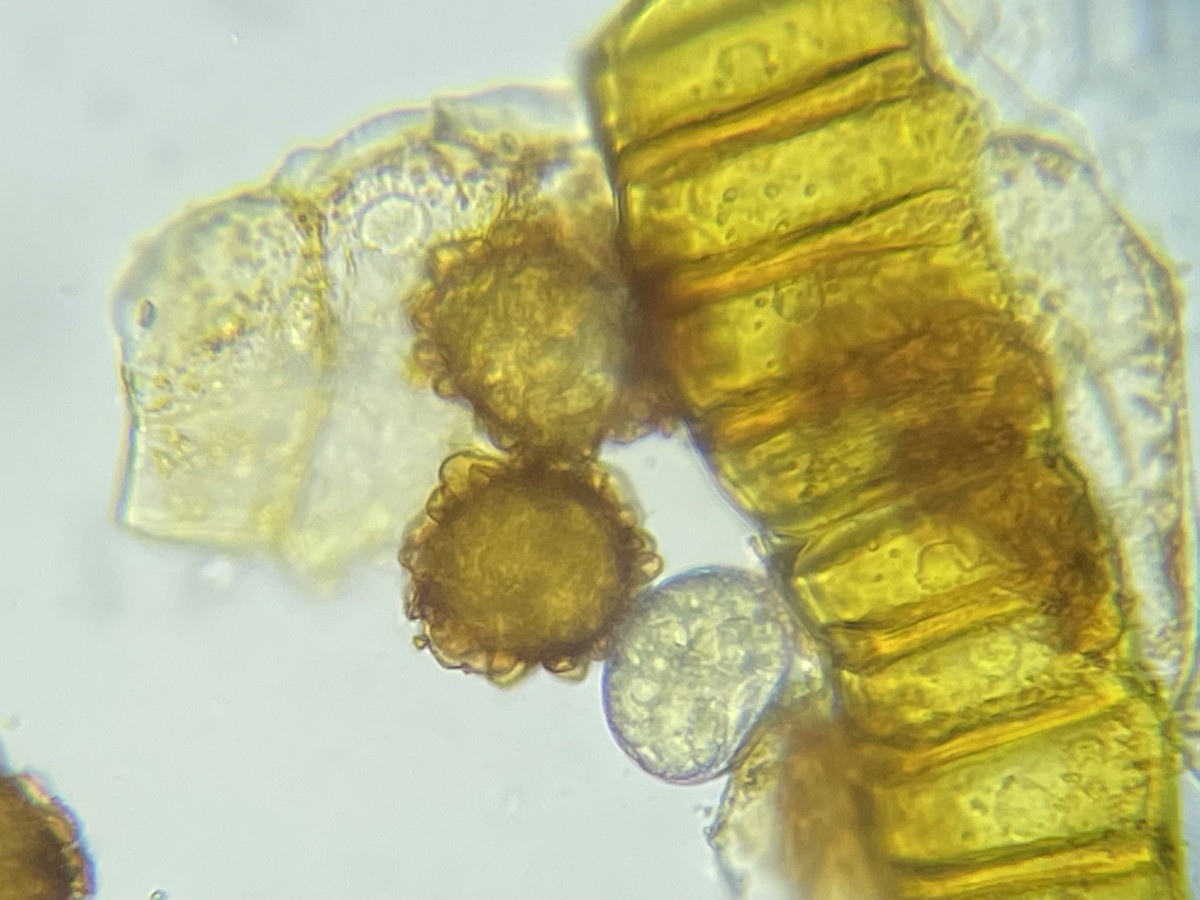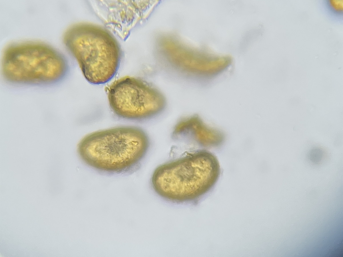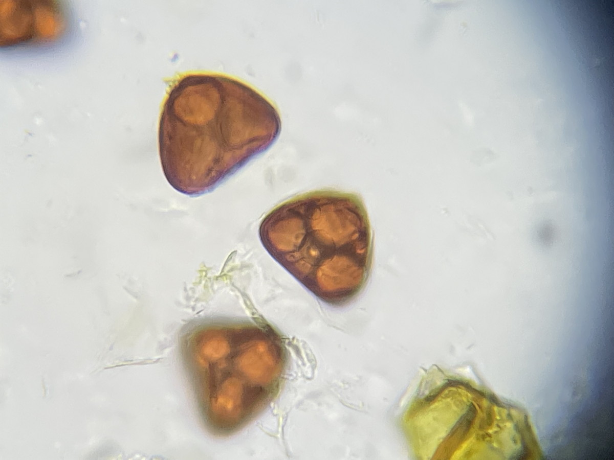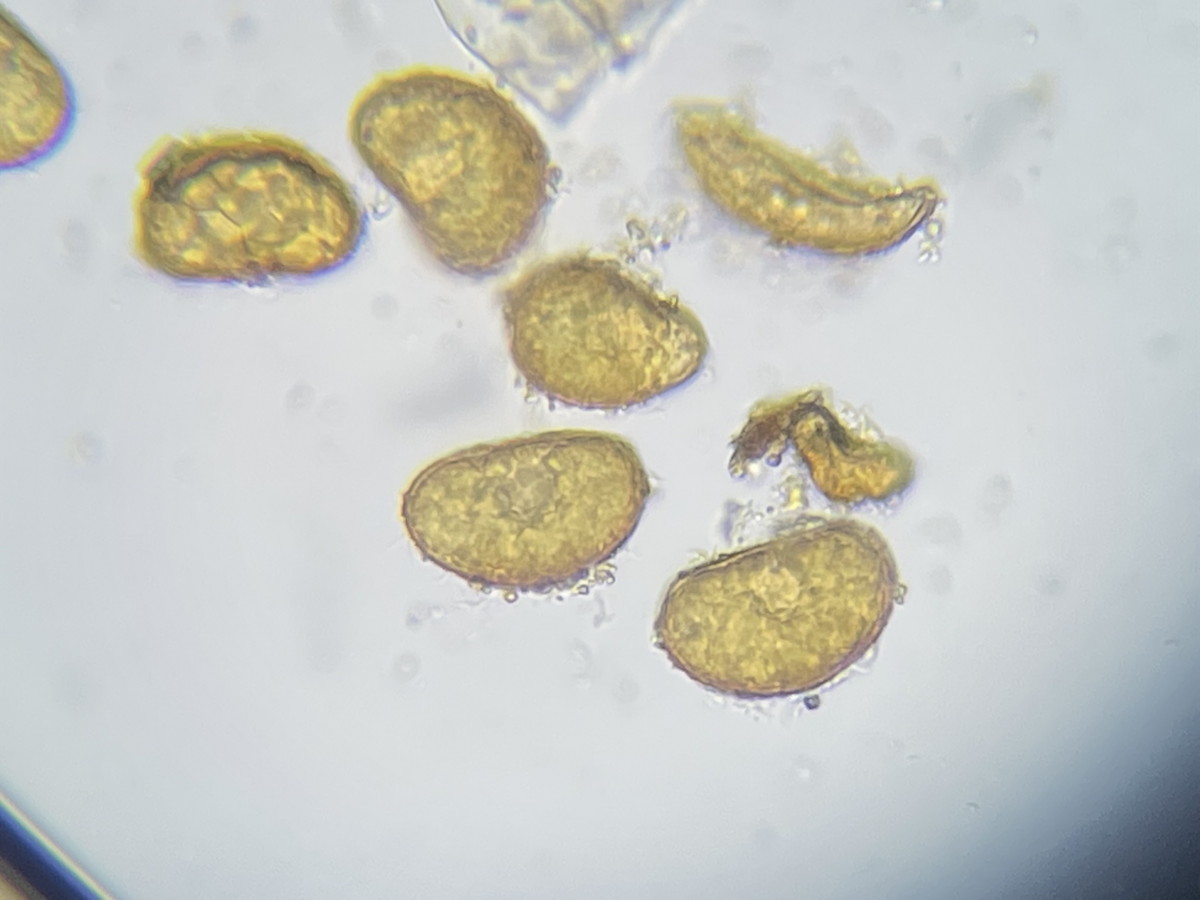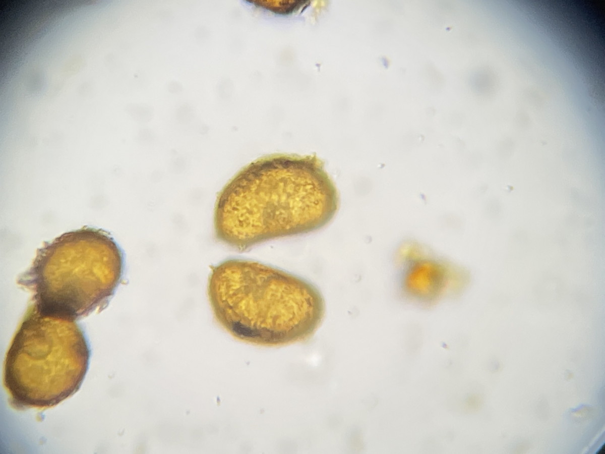 ※胞子は、大きさに大小があり形は歪で不揃いで雑種の特徴がよく現れている。