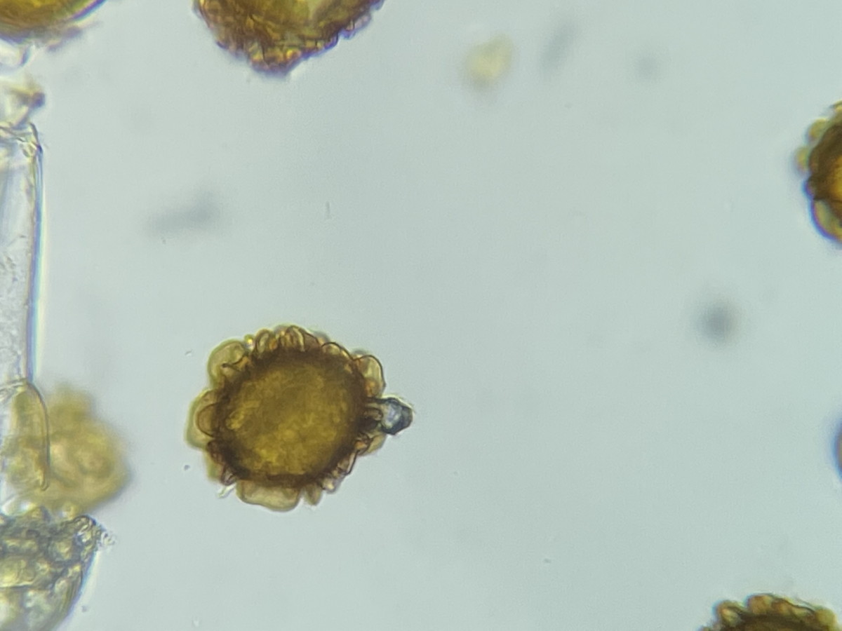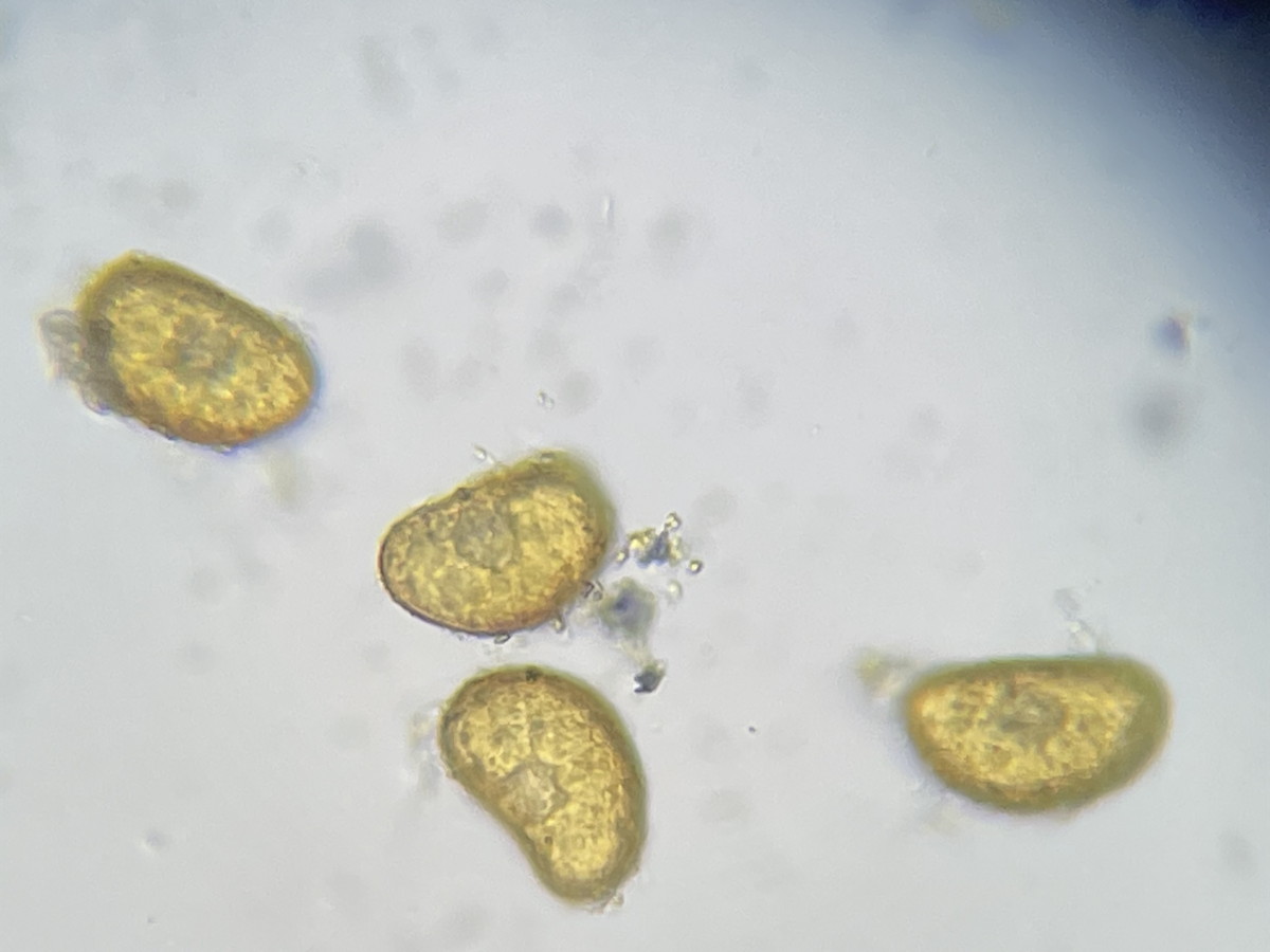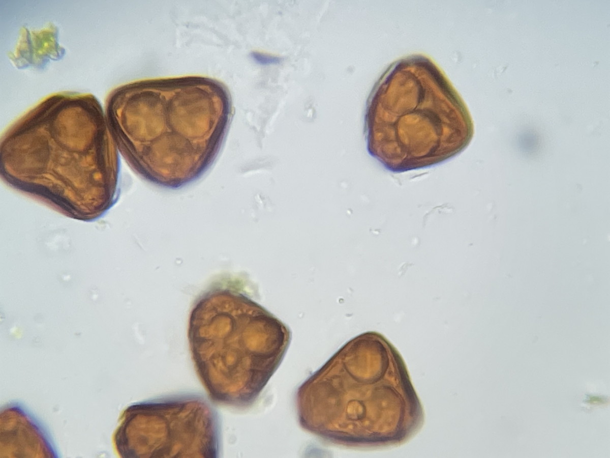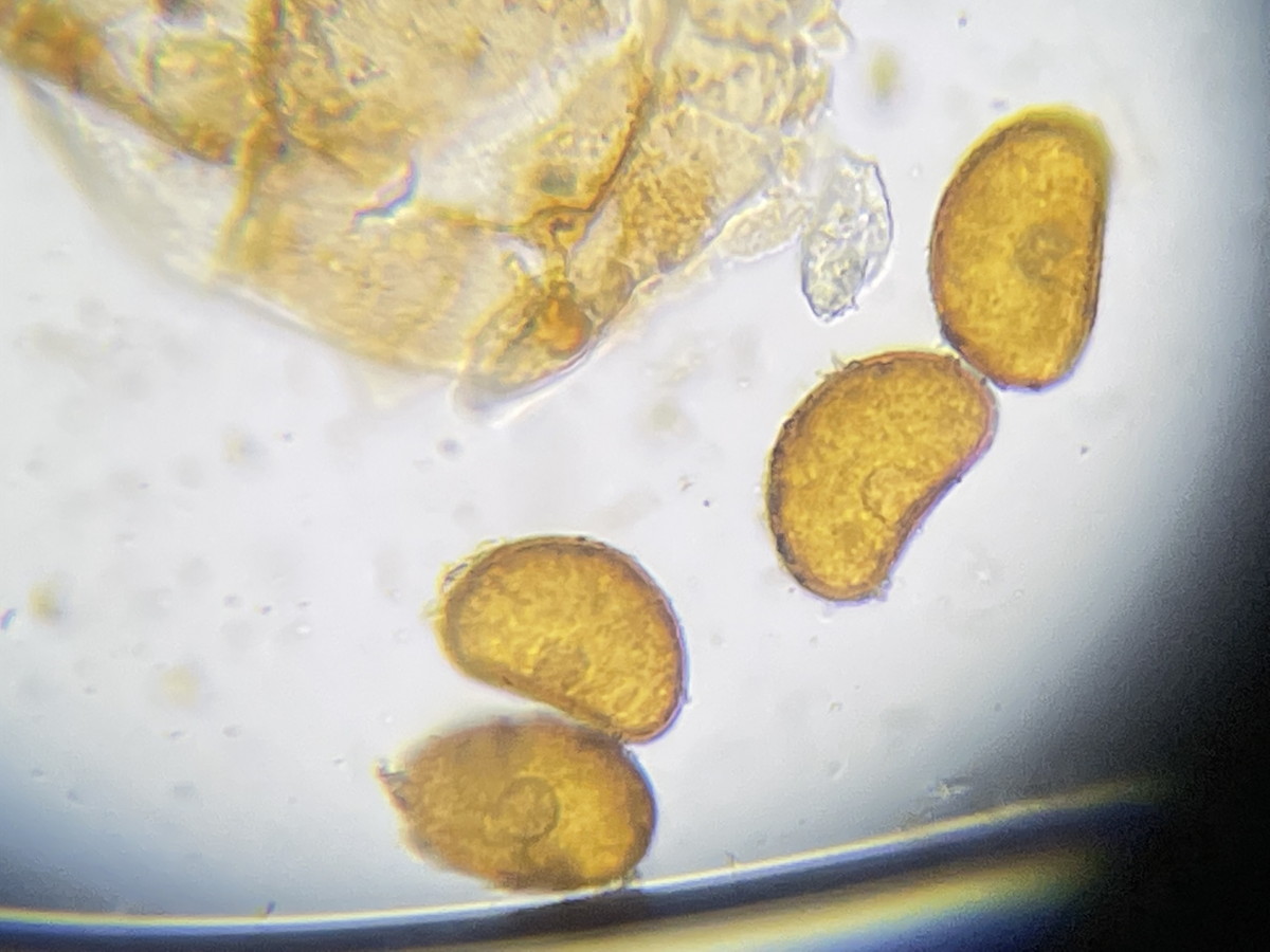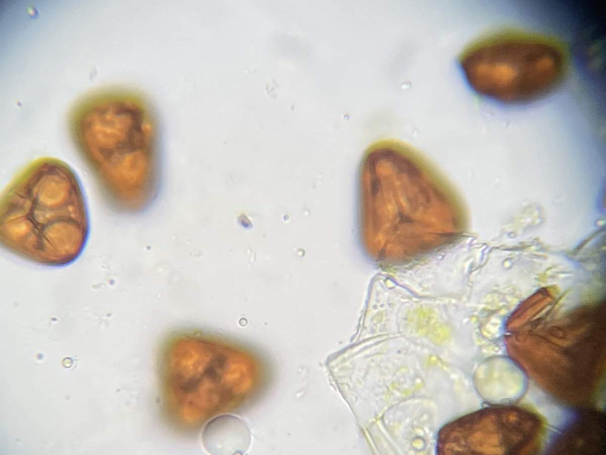 ※胞子は、大きさに大小があり形は歪で不揃いで雑種の特徴がよく現れている。
