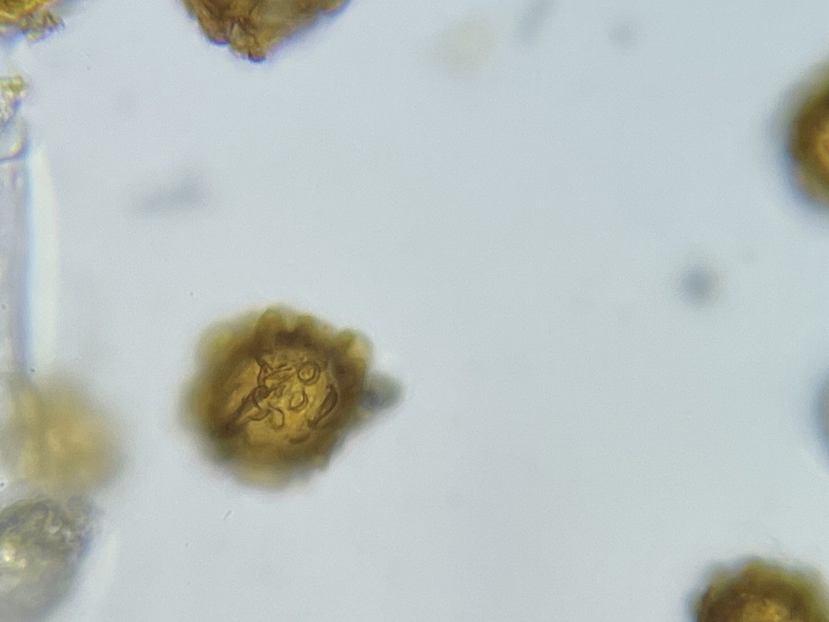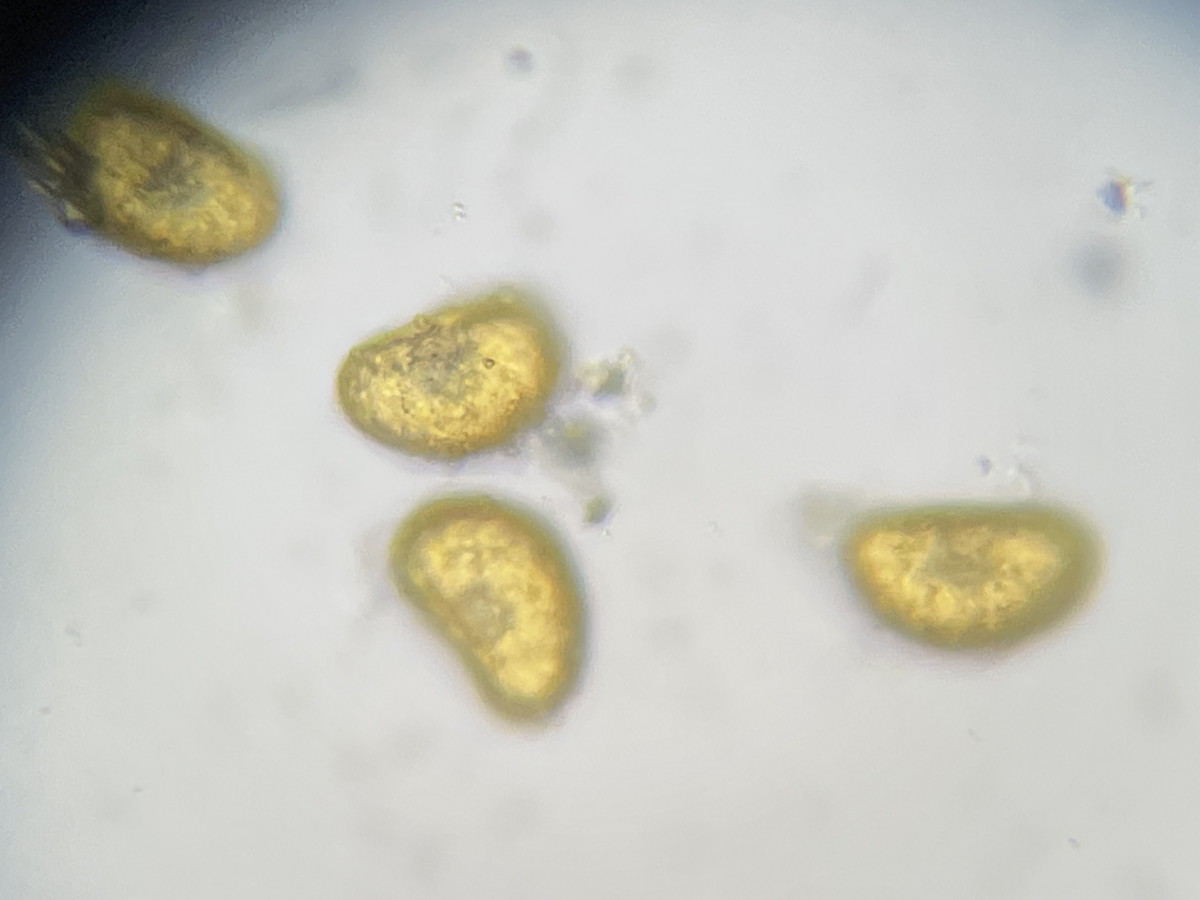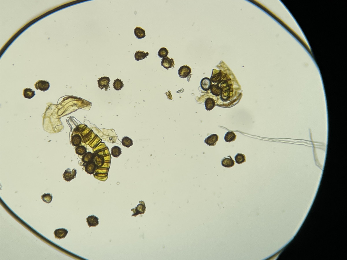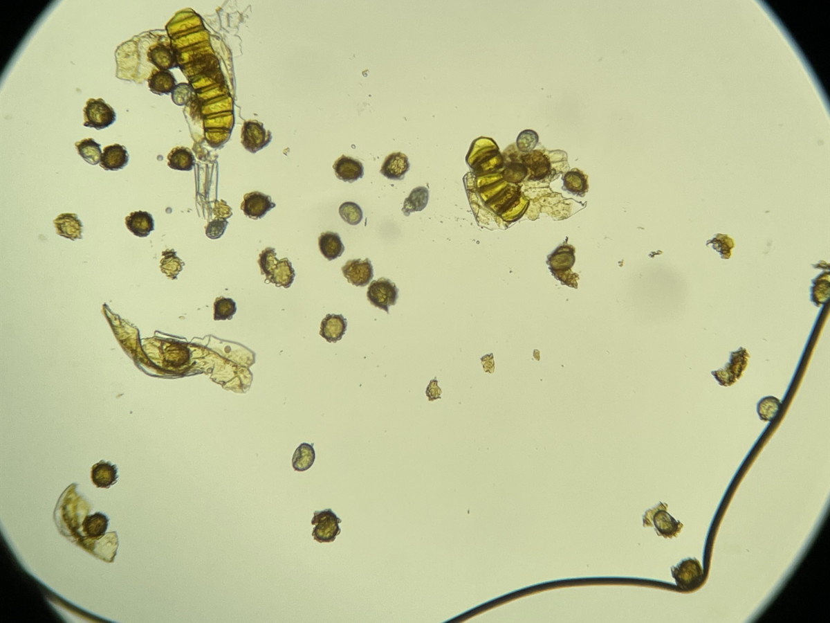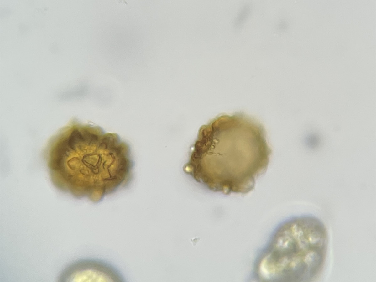 ※胞子は、大きさに大小があり形は歪で不揃いで雑種の特徴がよく現れている。