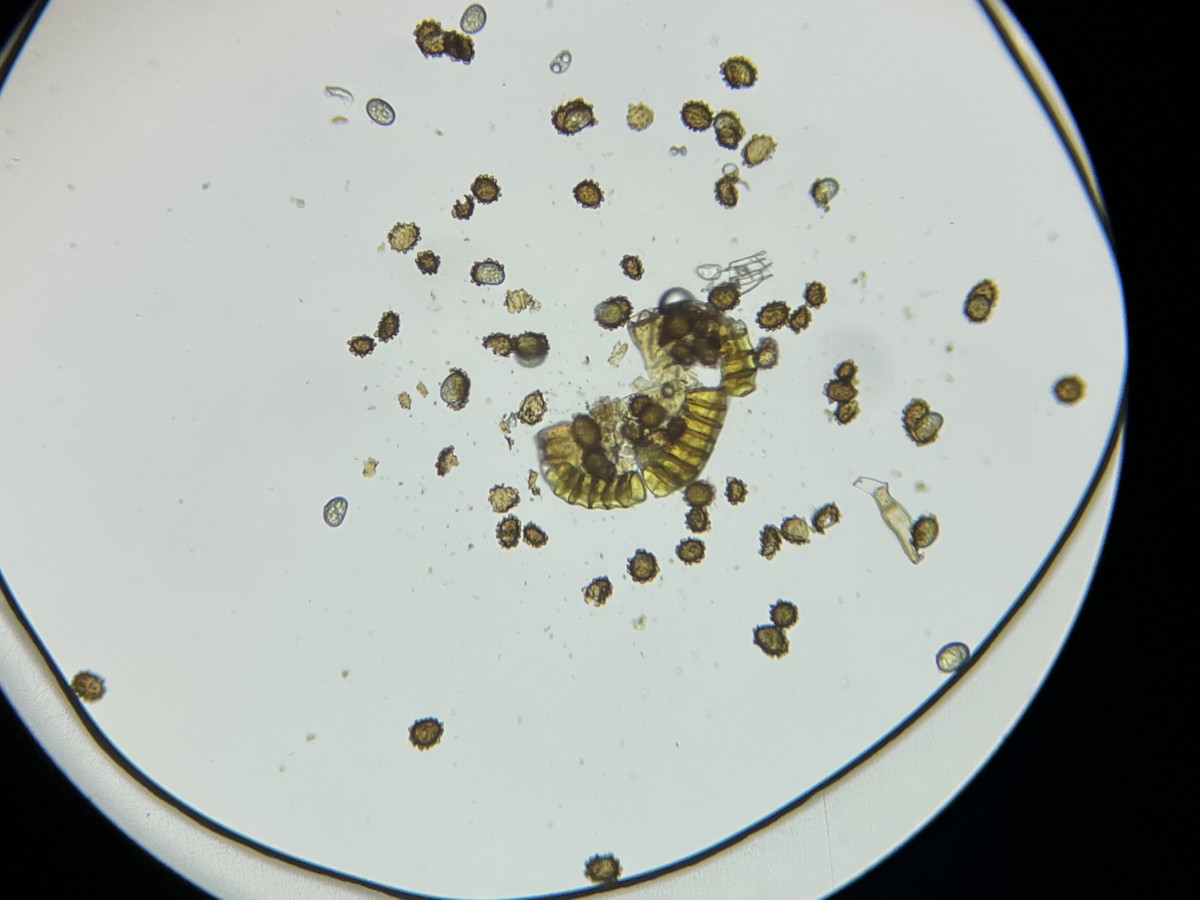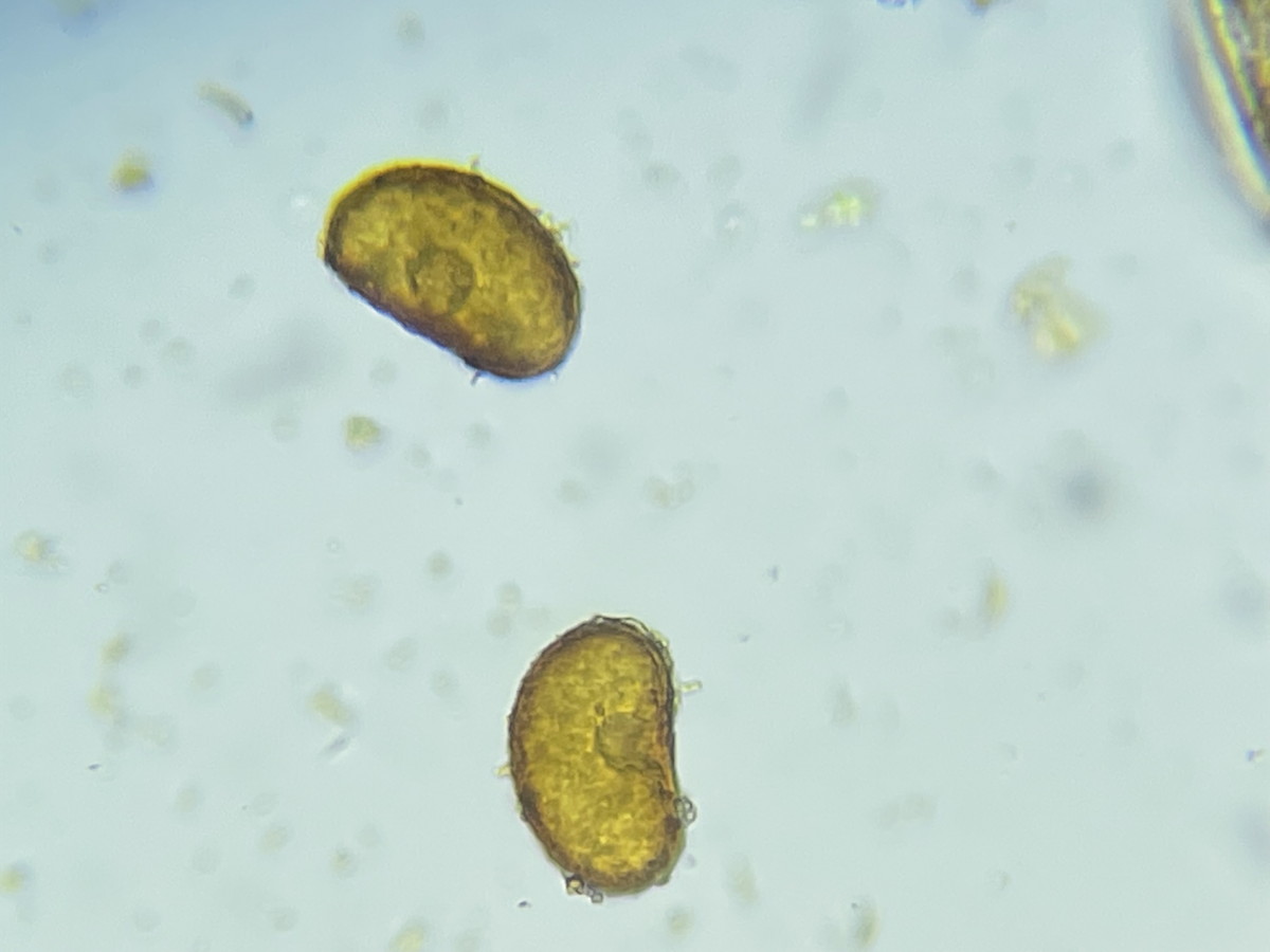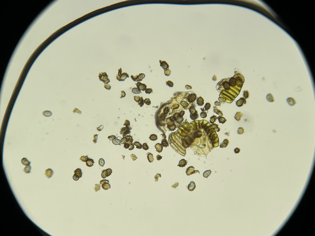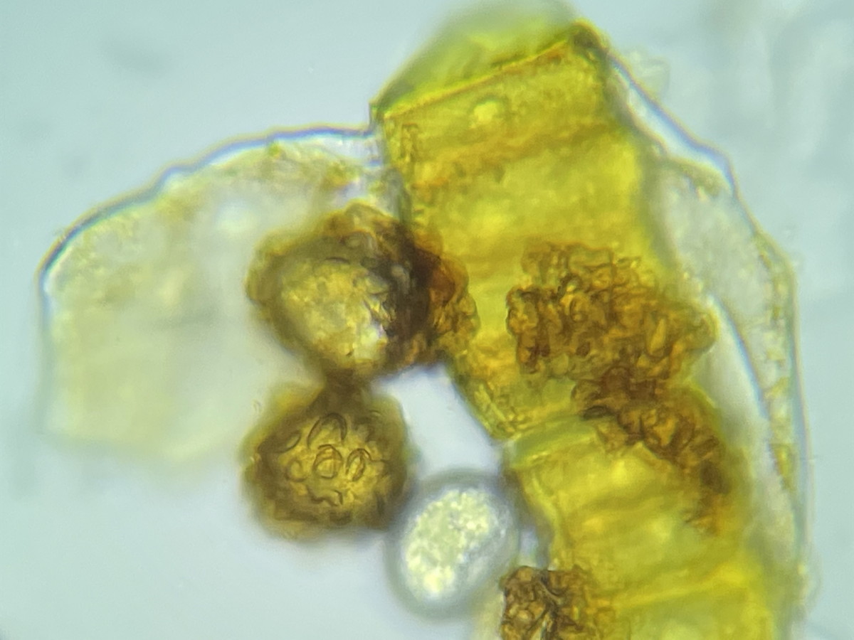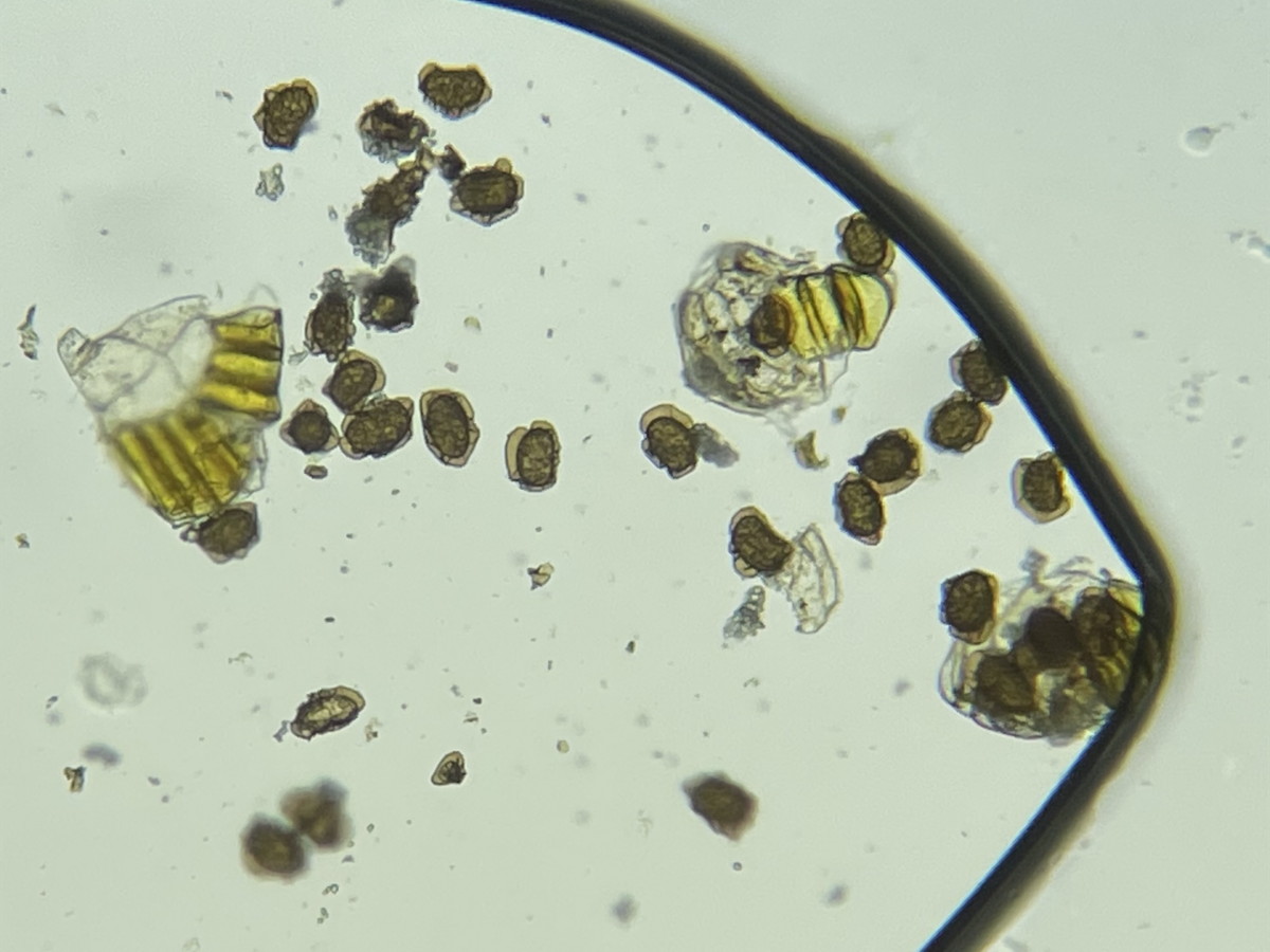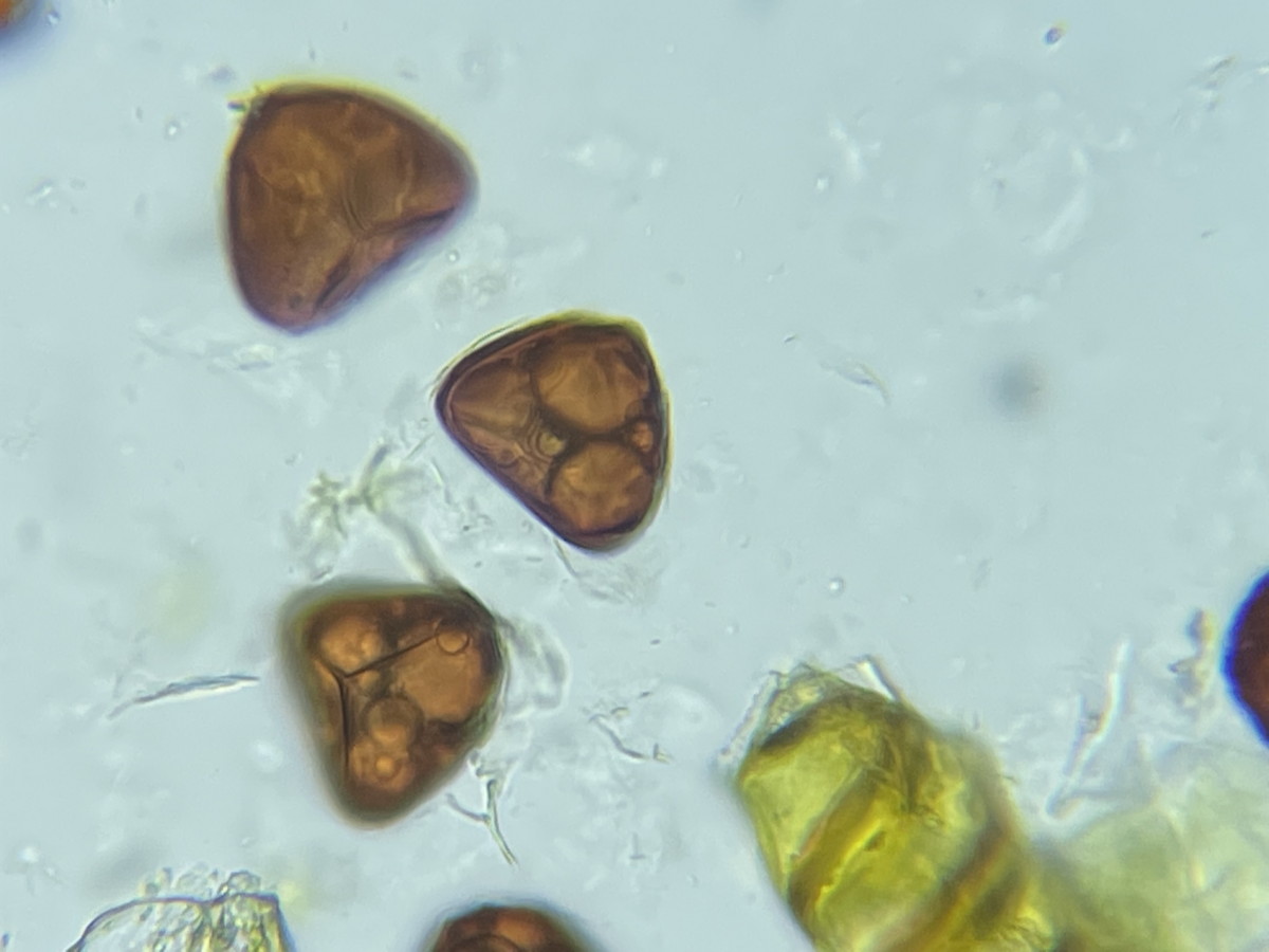 ※胞子は、大きさに大小があり形は歪で不揃いで雑種の特徴がよく現れている。