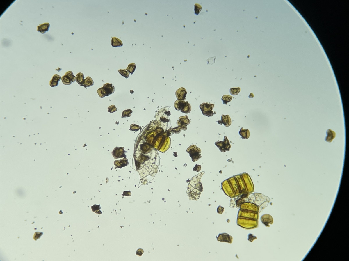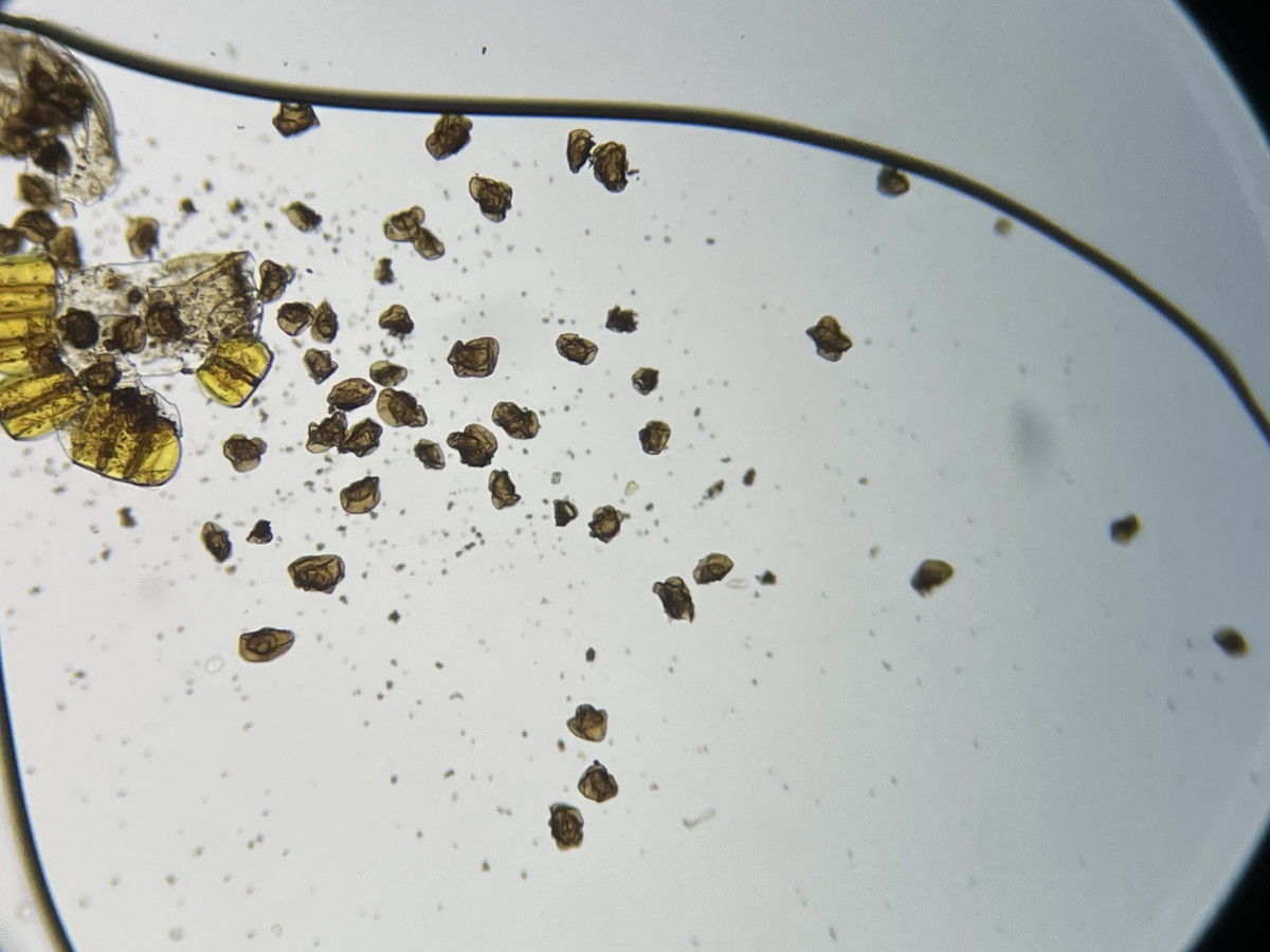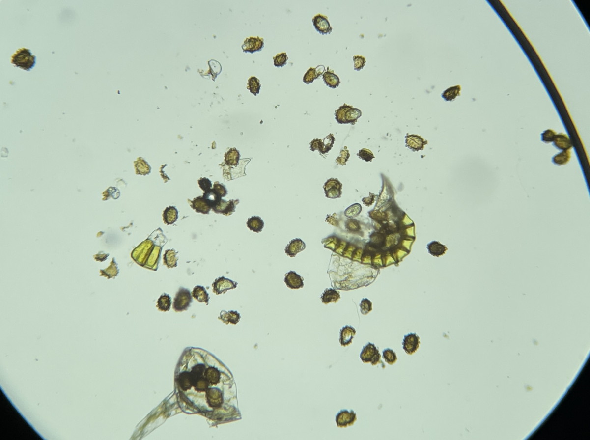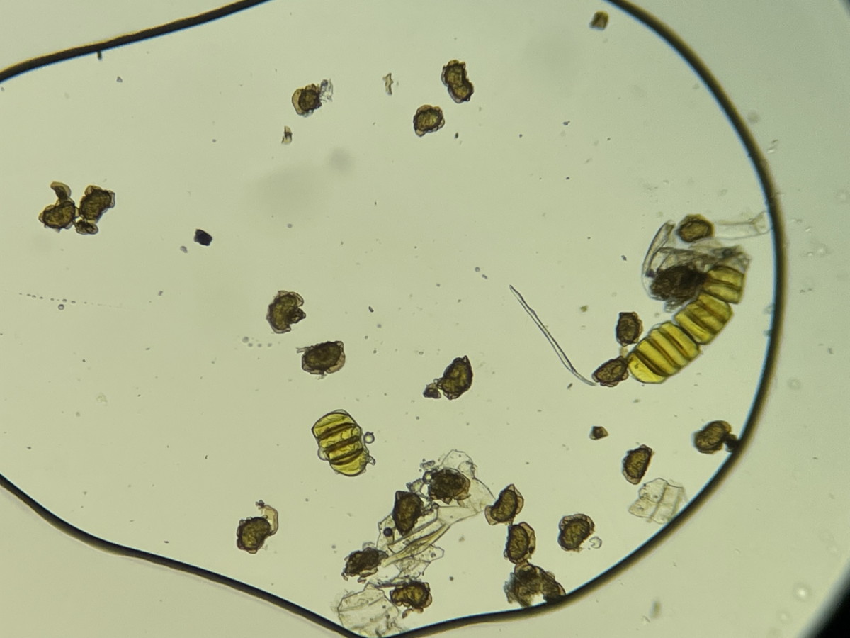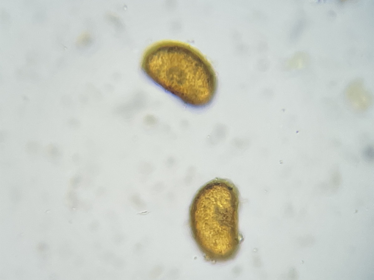 ※胞子は、大きさに大小があり形は歪で不揃いで雑種の特徴がよく現れている。