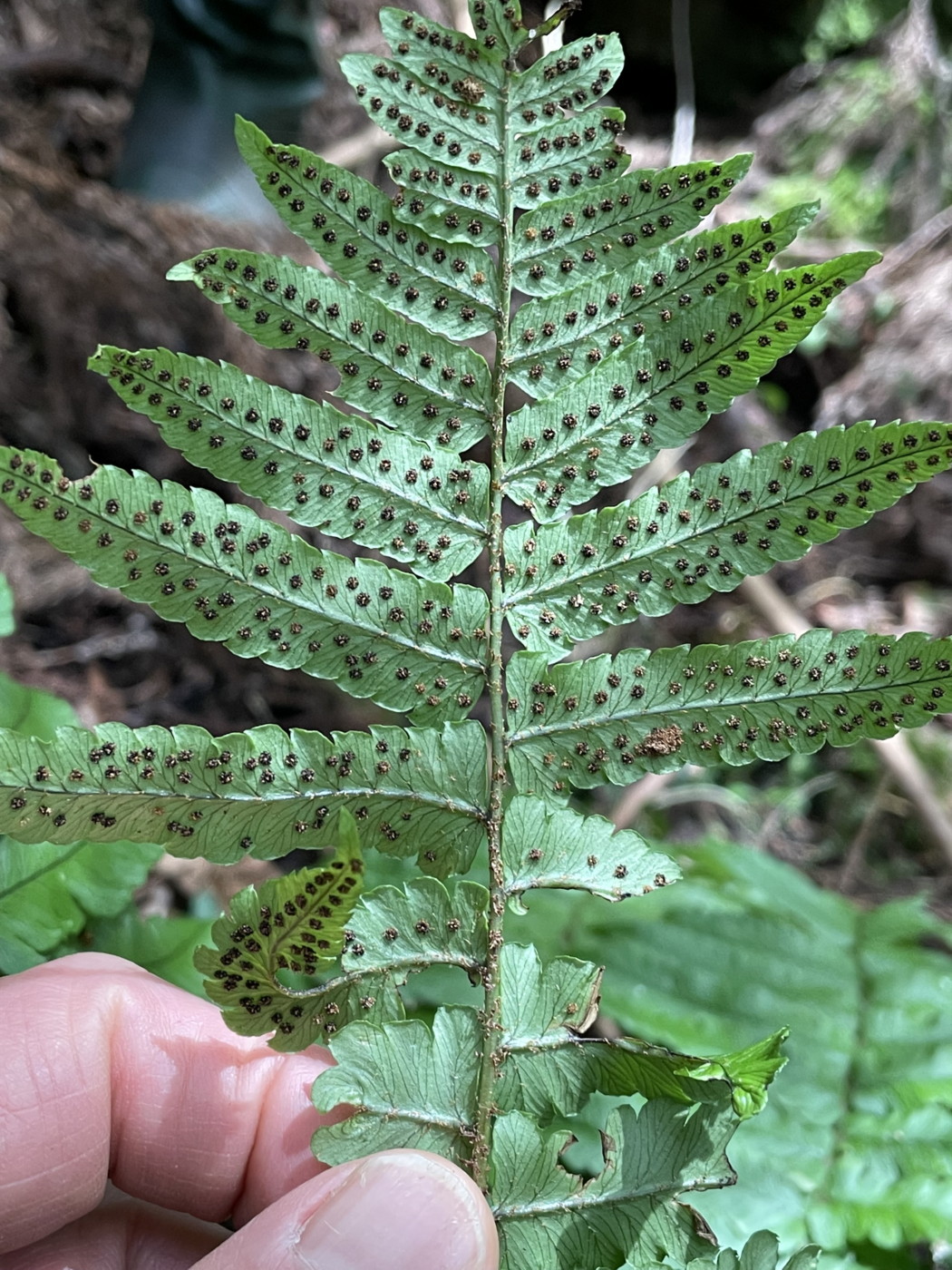 (1)(2)ハコネオオクジャク、胞子嚢群は葉身の上半分~1/3につく