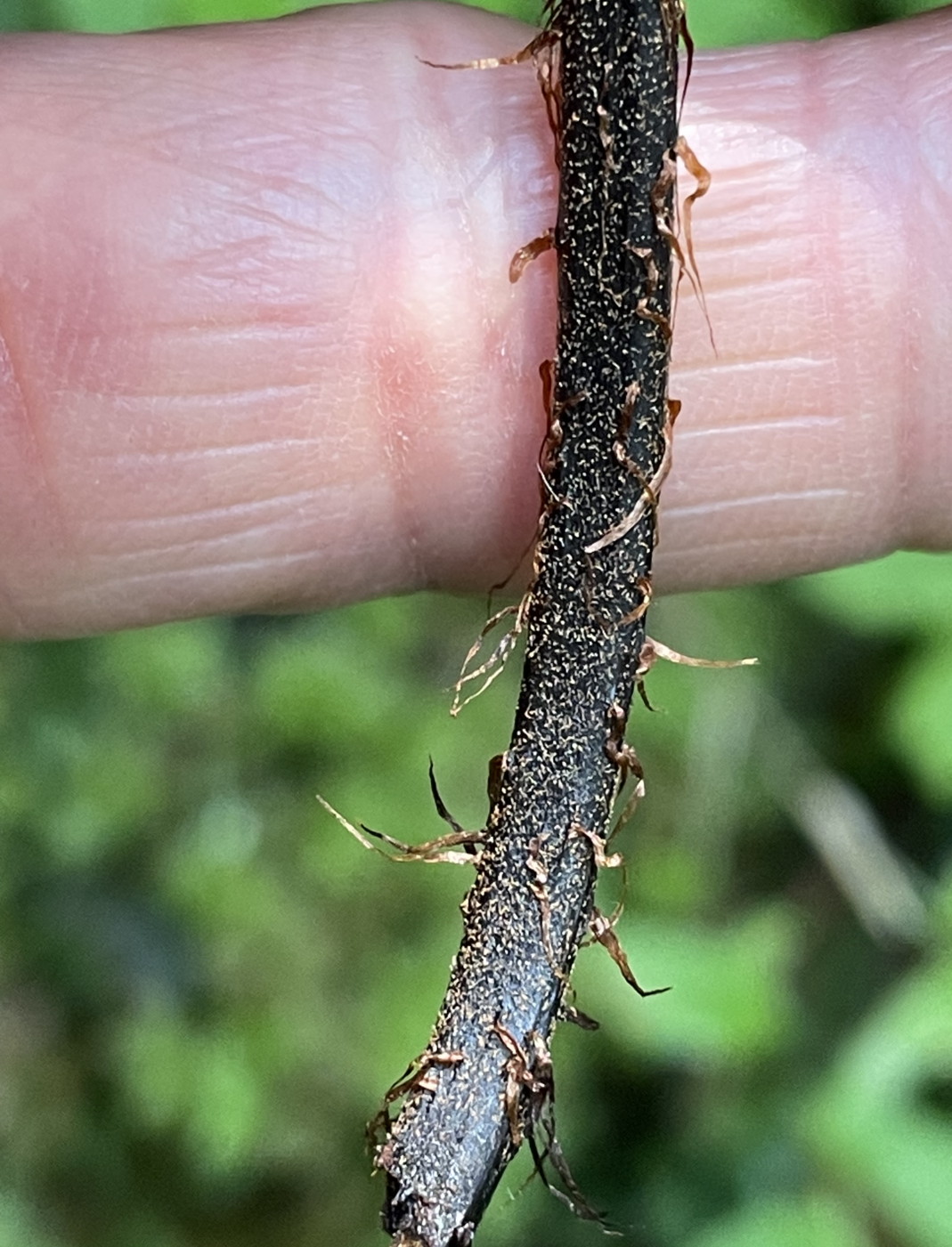 (1)カラクサイヌワラビ、葉柄基部の鱗片(ピンボケ)