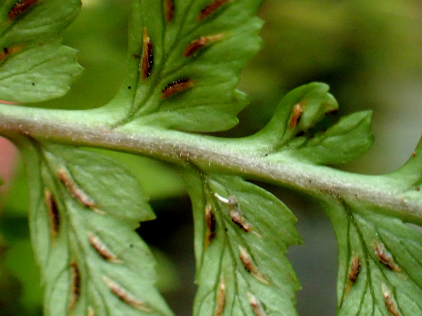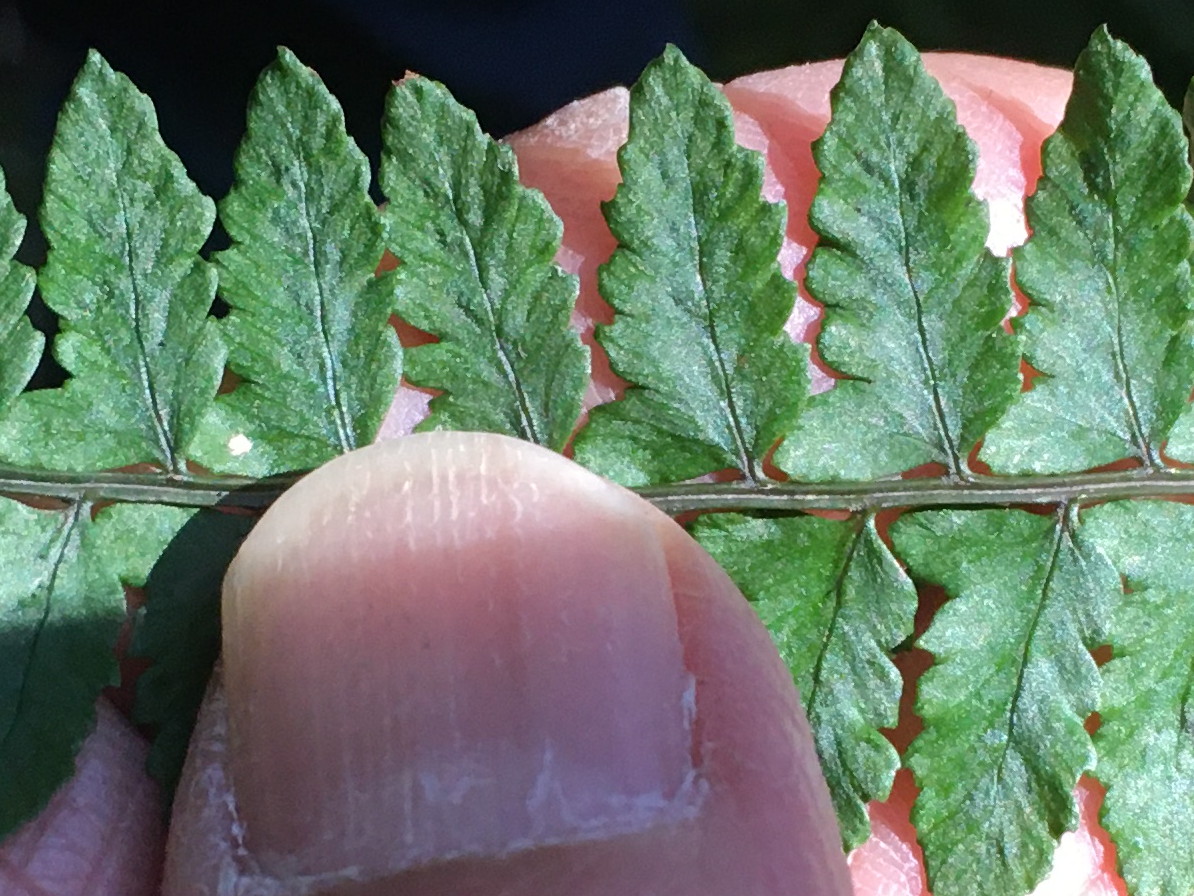 ヒロハイヌワラビ、羽軸裏側