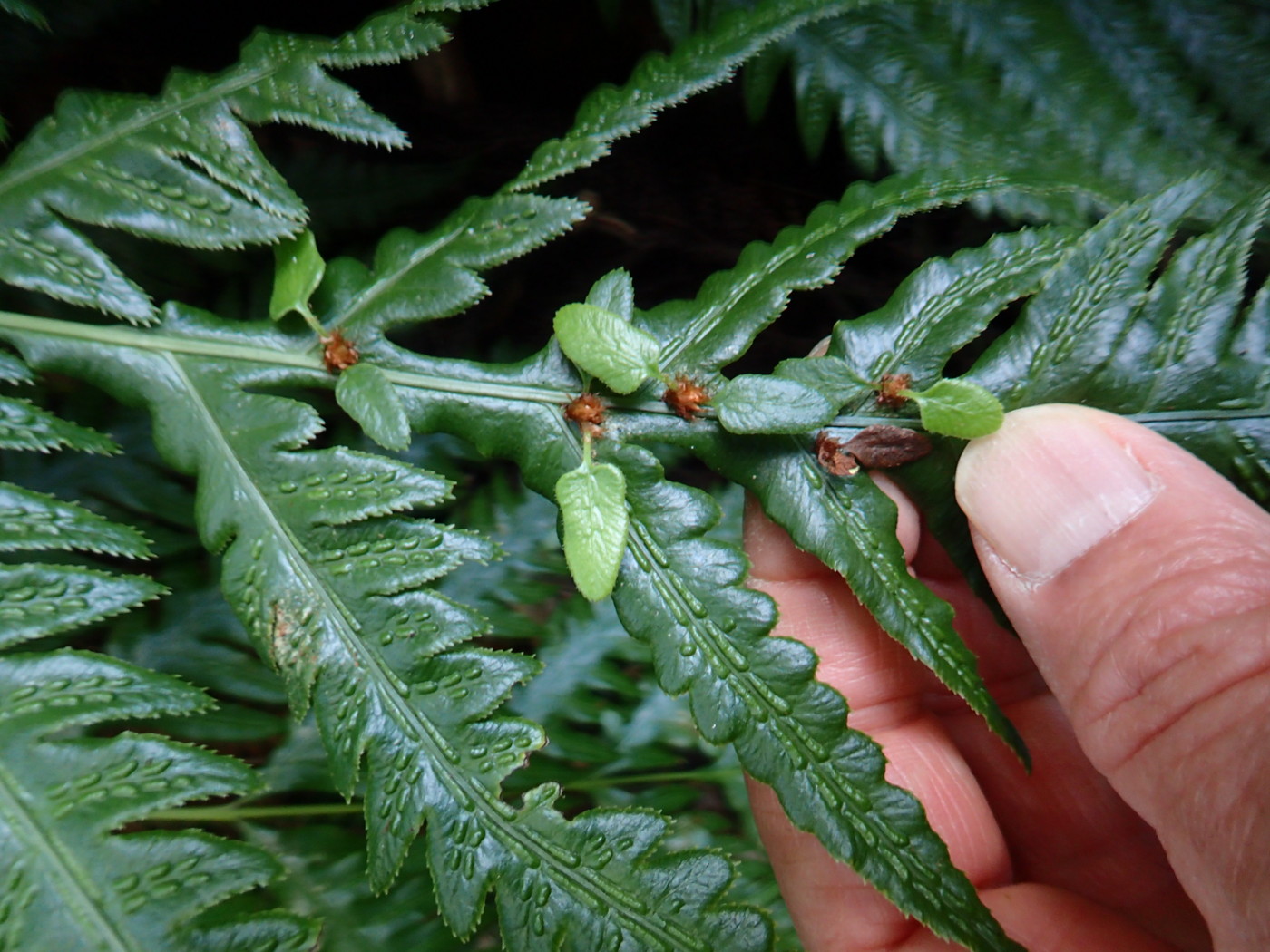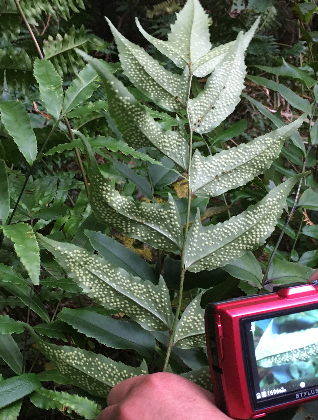 (1)メヤブソテツ、葉身裏側