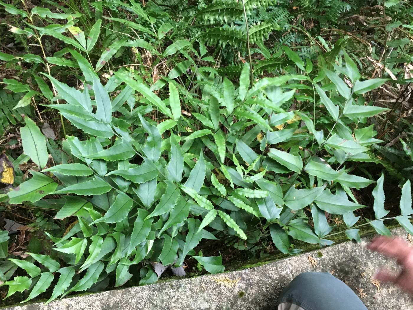 オオバノハチジョウシダおよびオオバノアマクサシダが生育していた。オオバノアマクサシダは側羽片の先端(頂小羽片)が長いが、葉の大きさは150㎝に達するものもみられた。