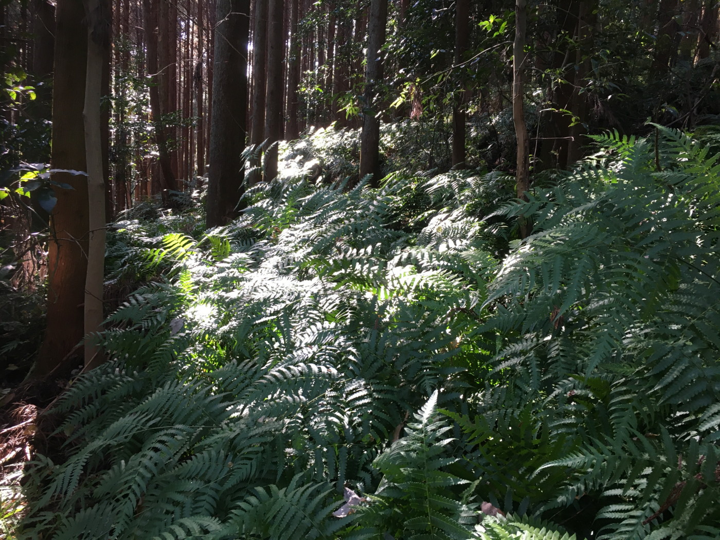 (1)スギ・ヒノキ林林床に生育するイワヘゴ