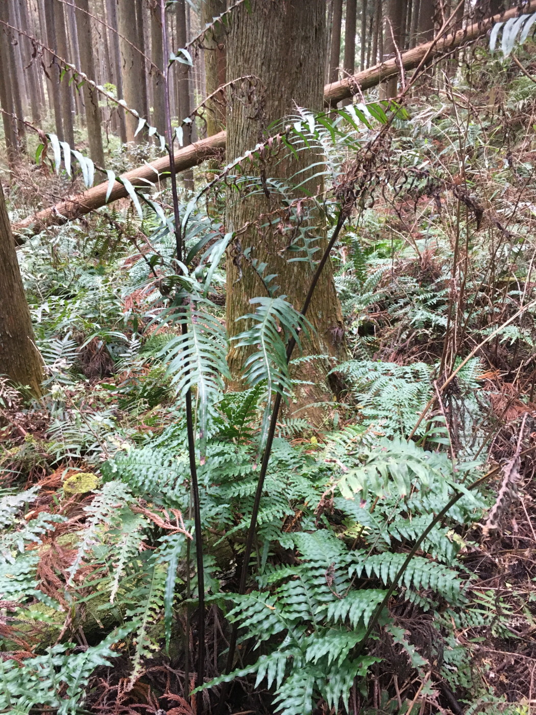 (1)スギ・ヒノキ林林床に生育するイヌイワヘゴ