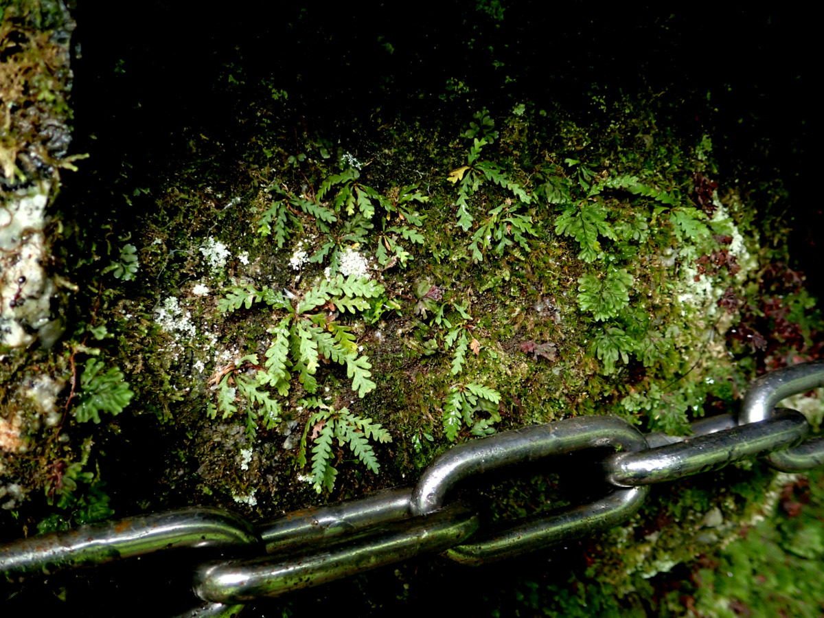 生育している環境:渓谷沿い、日陰でやや乾燥気味の切り立った岩壁面。小さいので見過ごしやすいが、2,3株~10株程度まとまって生える。