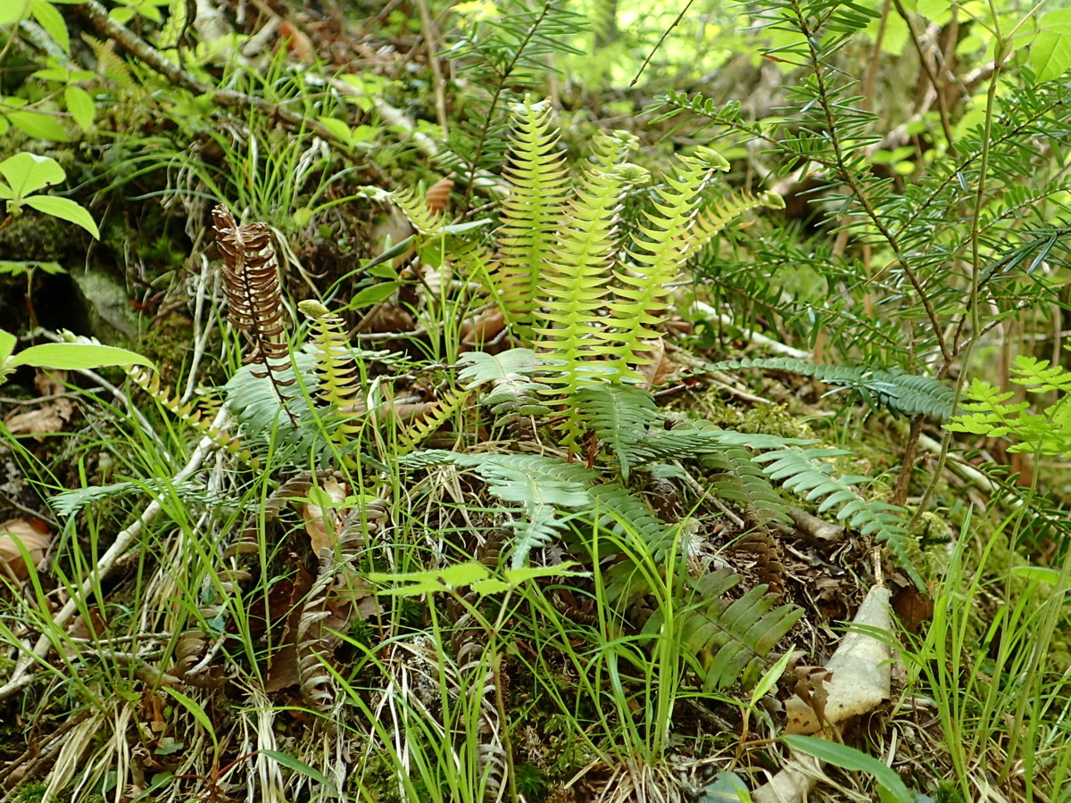 (1)オサシダ、新芽と昨年の胞子葉