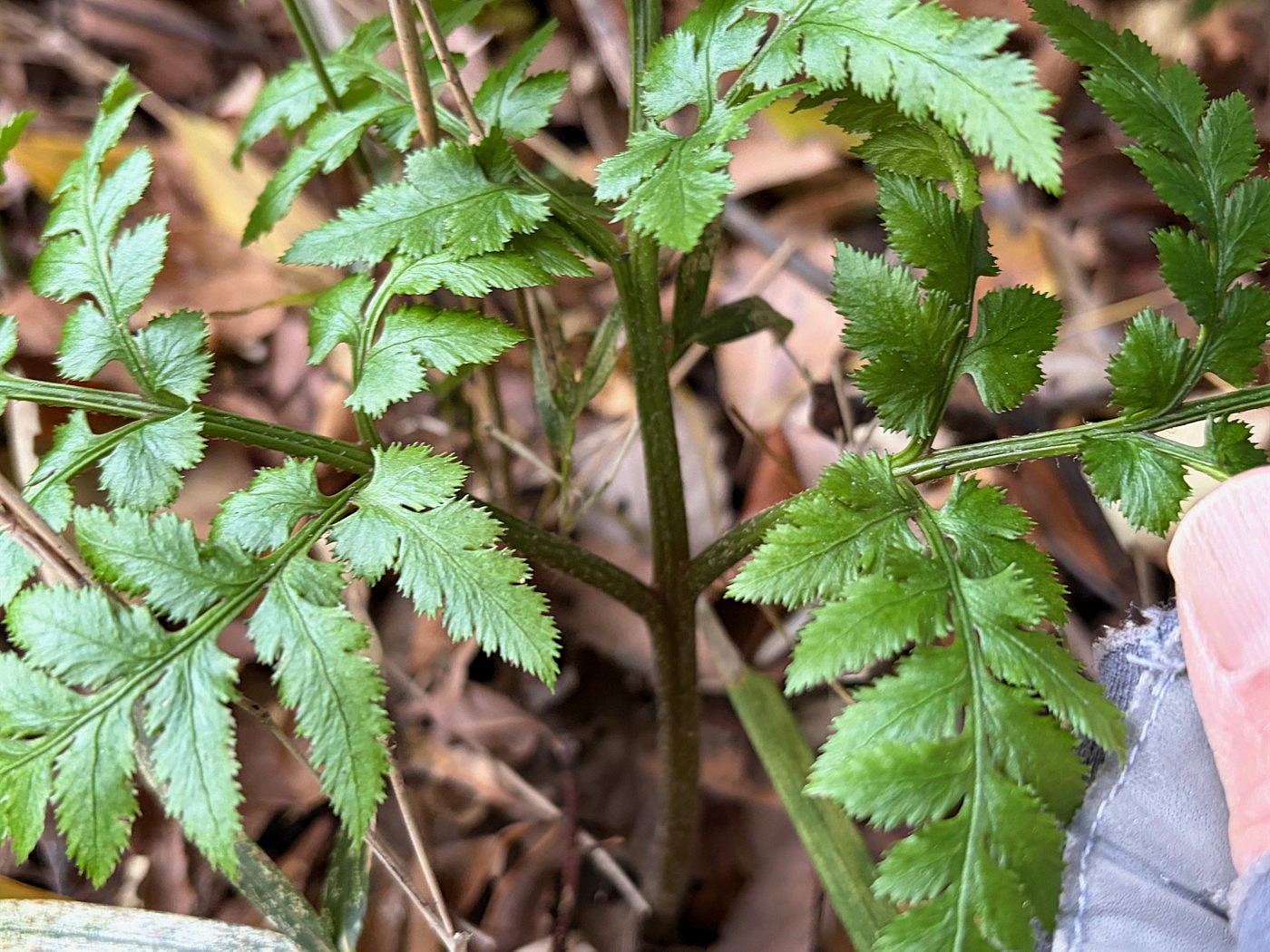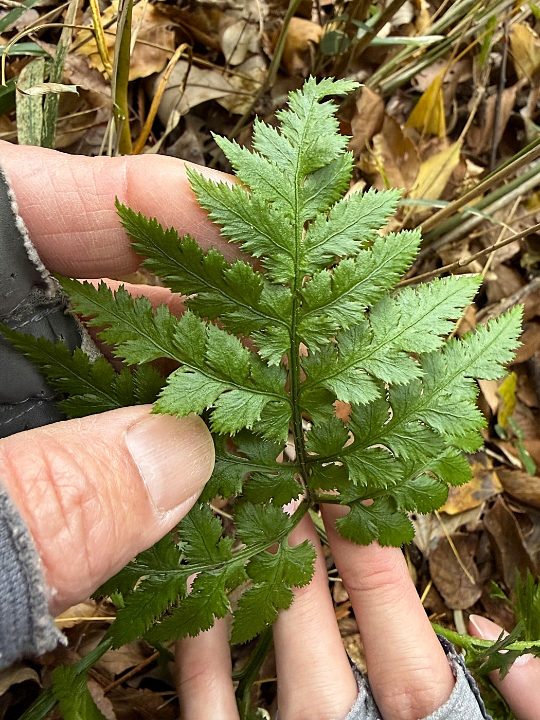 オオハナワラビが関わる雑種、一緒に生えていた一昨年の葉の裂片