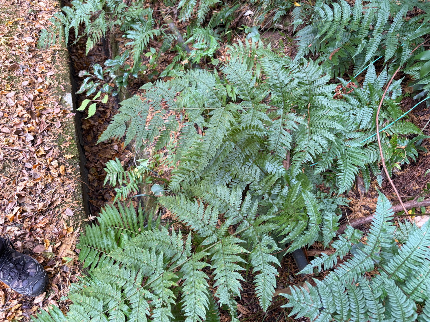 林内のウエットな涸れ沢で観察されたホシダあるいはイブキホシダ(イブキシダ×ホシダ)
