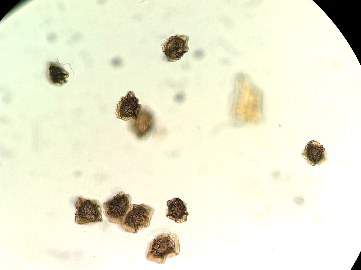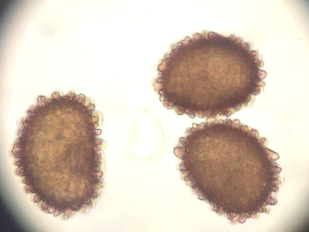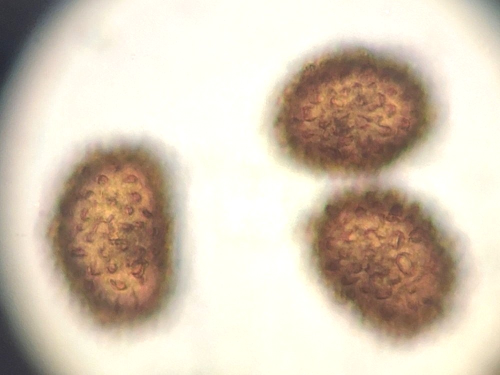 ②ホソコバカナワラビ、歪な胞子(左の写真の拡大)