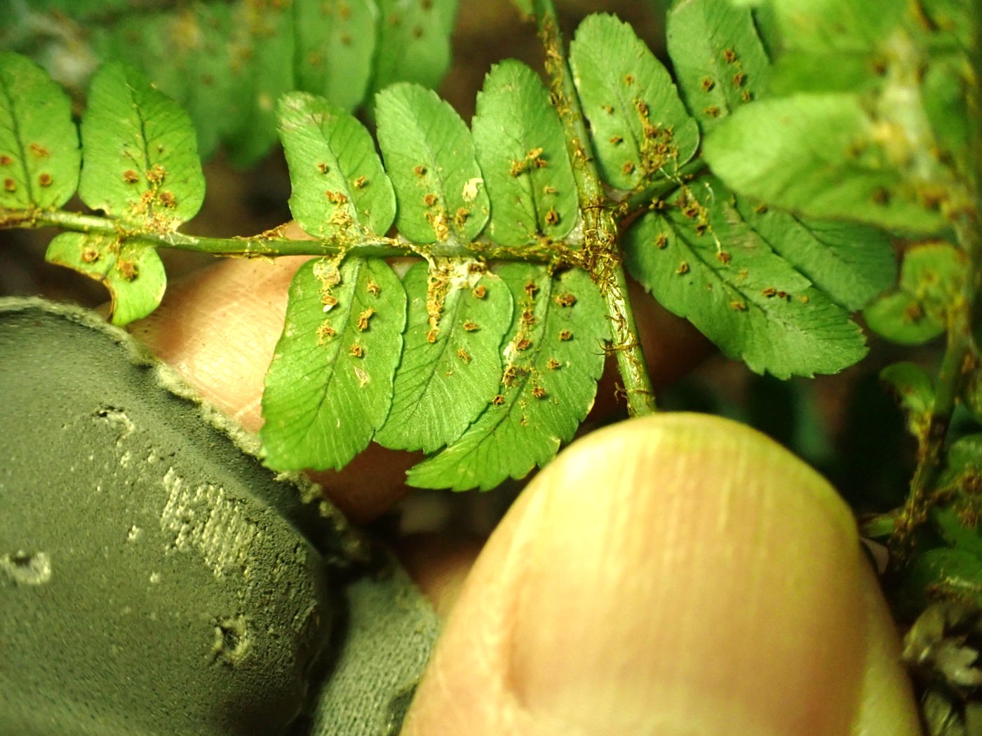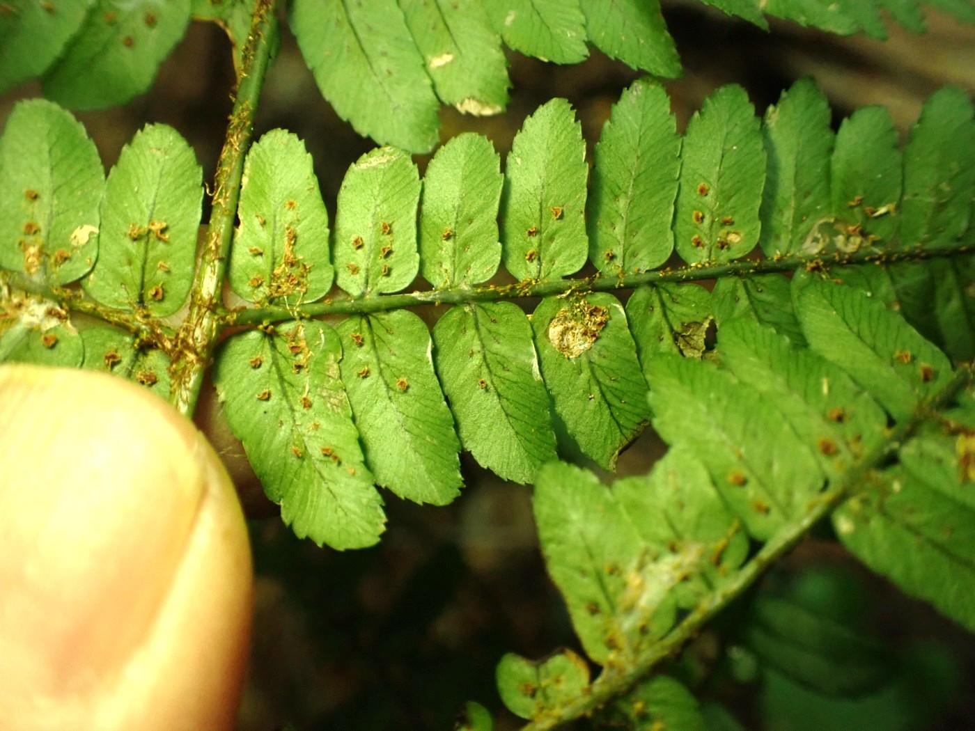 ②ホシダあるいはイブキホシダ(イブキシダ×ホシダ)、葉身上部裏側