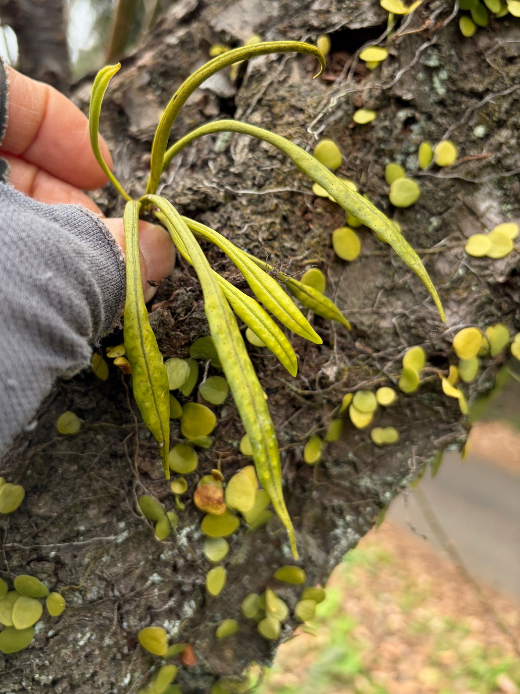 林縁のカキの木に着生するフジノキシノブが関わる雑種
