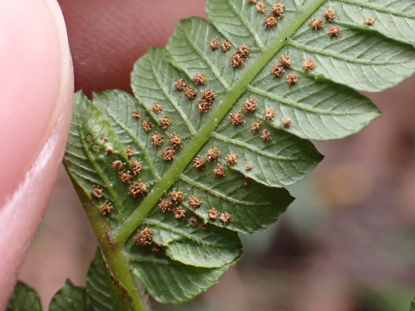 ①②ホシダあるいはイブキホシダ(イブキシダ×ホシダ)、羽片裏側
